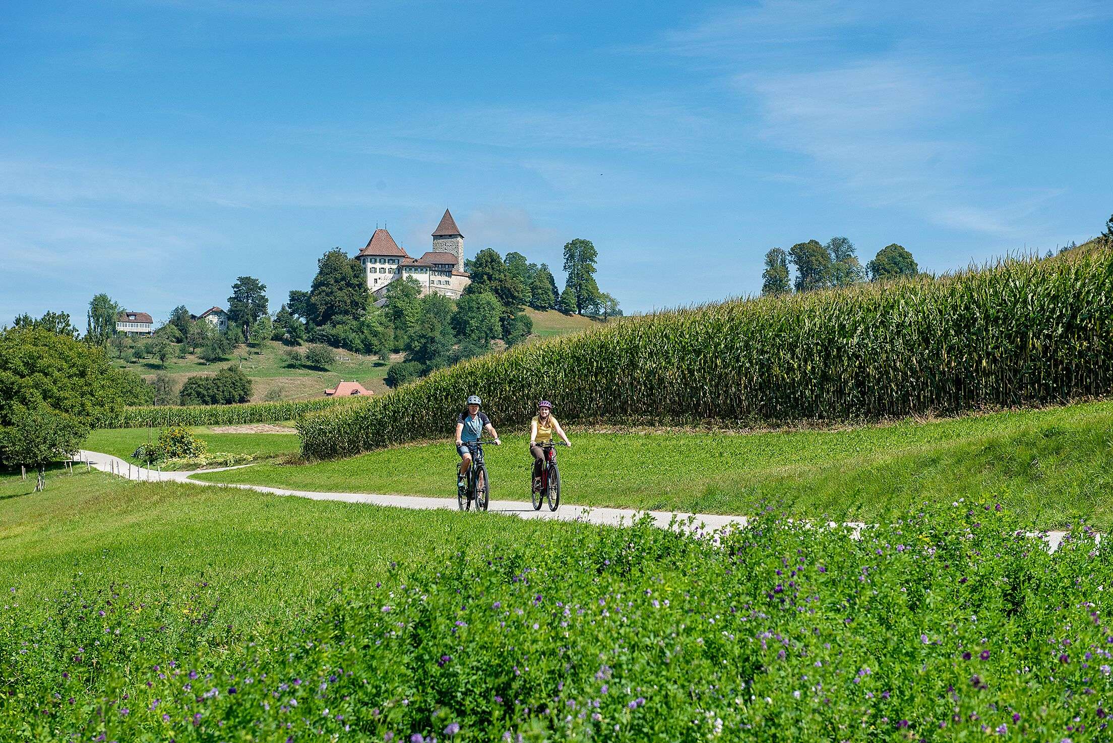 The "Castle Tour" is the new highlight in the e-bike paradise "Hügu Himu". In three enjoyable daily stages with a total of 140 kilometers, you can experience the Emmental and its noble side in a wonderful way.