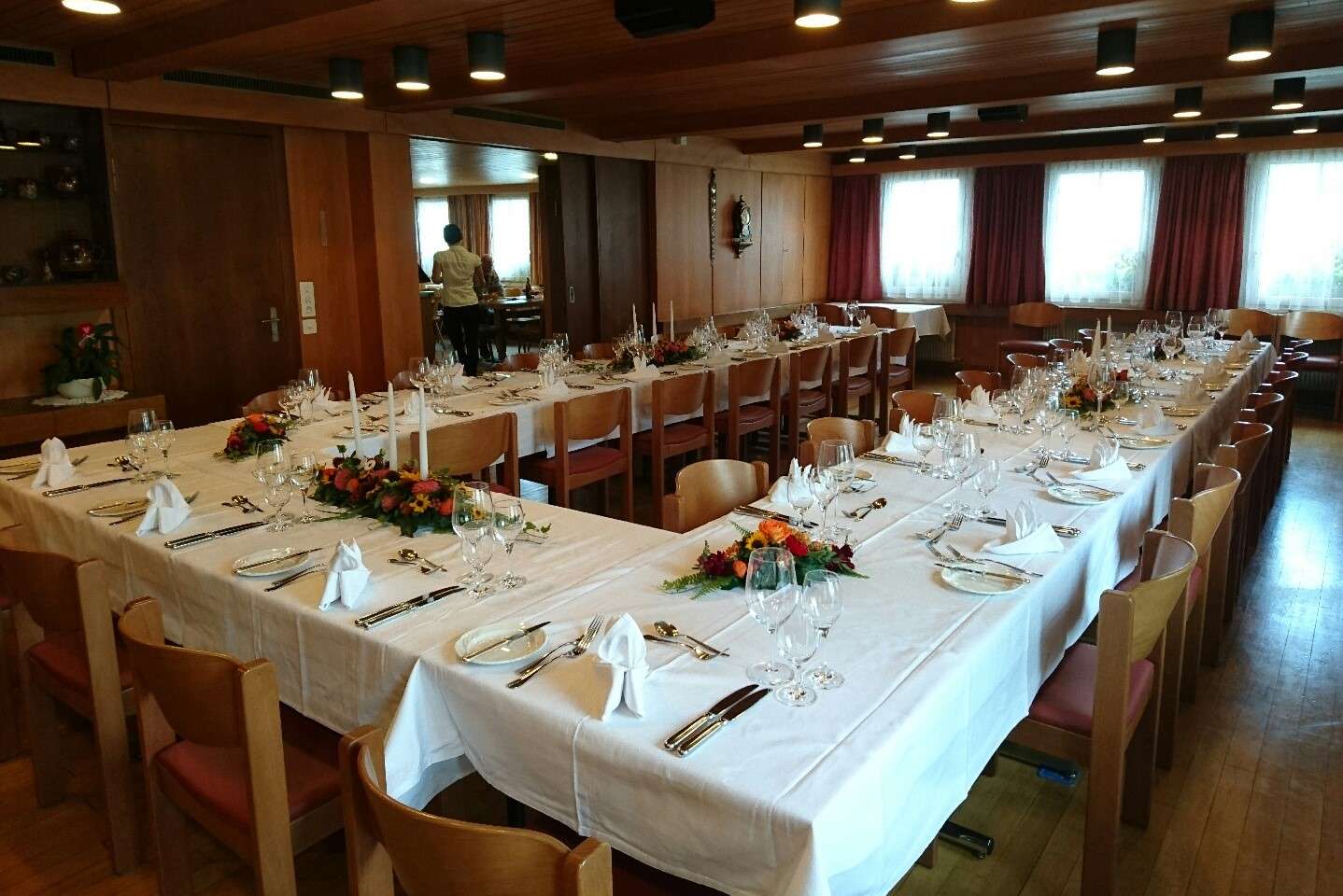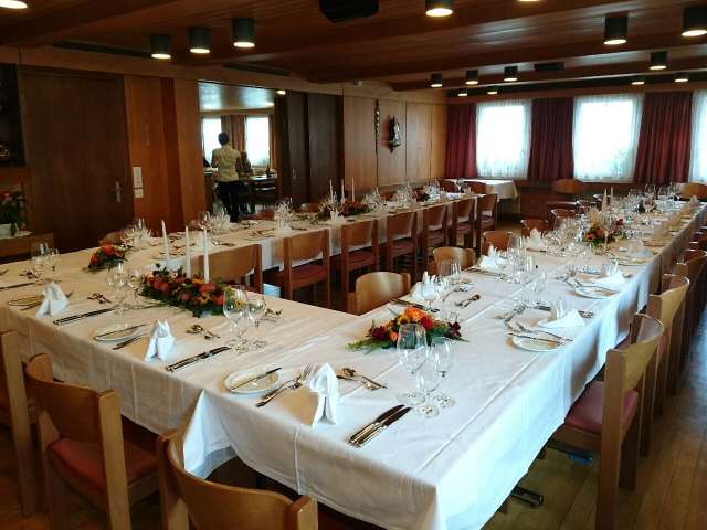 La salle pouvant accueillir 200 personnes, la petite salle à manger pour 50 personnes, la salle avec cheminée pour 30 personnes et la salle à manger confortable sont idéales pour les mariages, les événements professionnels et familiaux ou pour passer un moment agréable entre amis. La cave voûtée soignée est parfaite pour un apéritif.