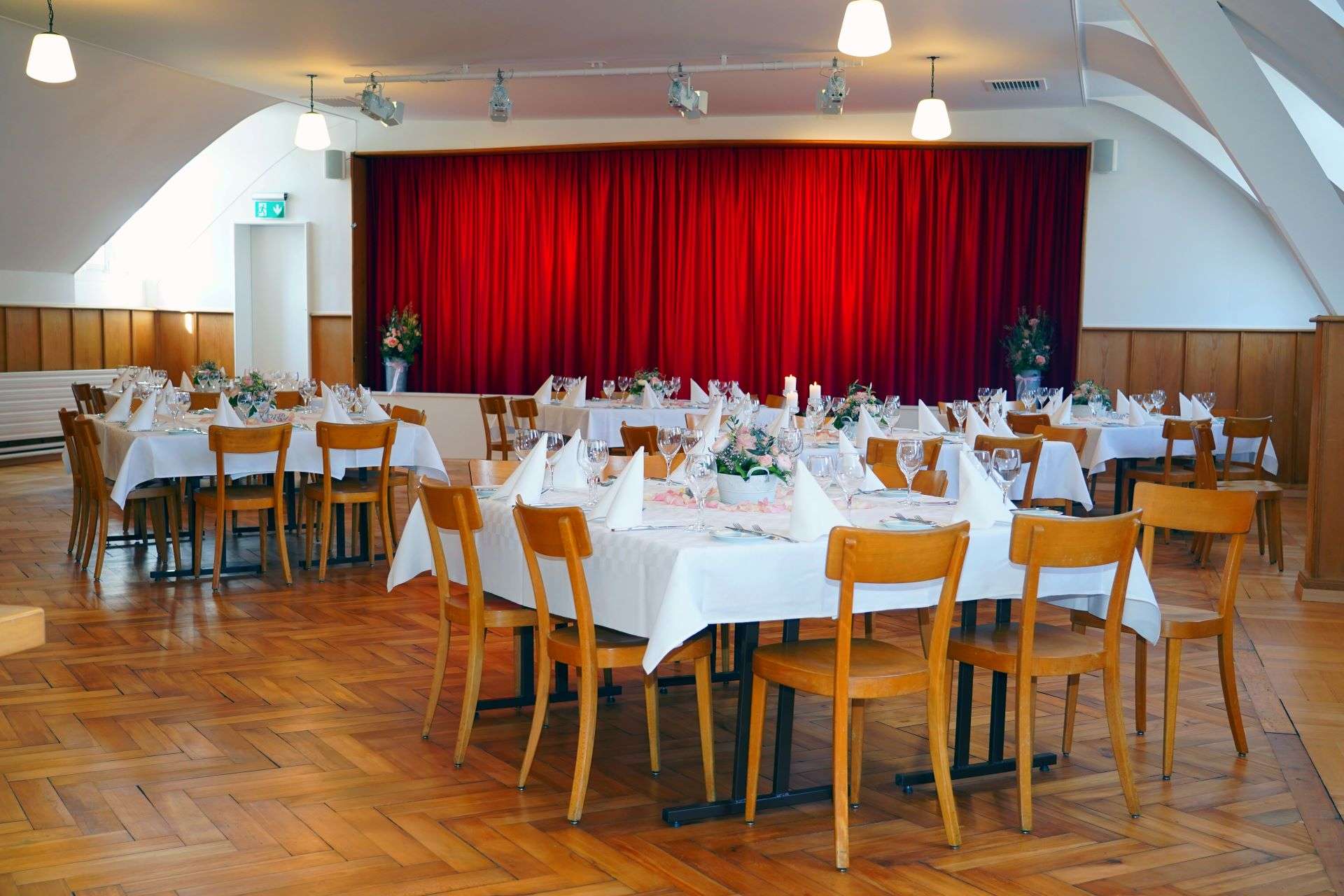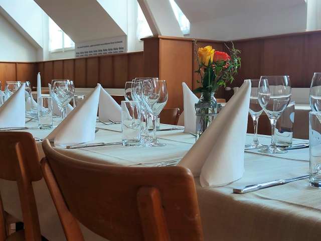 La cuisine est saisonnière, régionale et durable. Vous trouverez au menu des classiques de l'Emmental, ainsi que des menus adaptés à la saison et des plats typiques des auberges de campagne. La carte des vins vous permettra de trouver l'accompagnement parfait pour votre événement. Banquets et événements